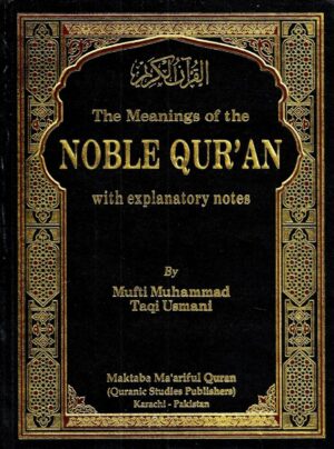 In this large-size Qur'an, each page includes the Arabic verses of the Surah, their transliteration in Roman script, and the translation of the verses in the English language. The purpose of Roman transliteration is to help the people recite the verses even if they cannot read the Arabic script. The English translation helps in understanding the meaning of the verses. This Qur'an has a beautiful black and golden Kabah-themed cover.